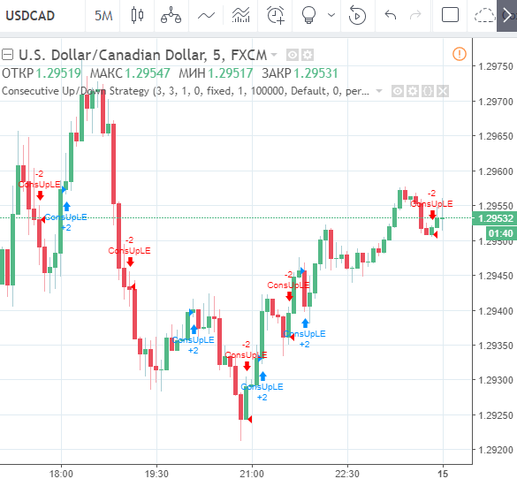 Заходим в индикаторы и выбираем стратегию “Consecutive Up/Down”.